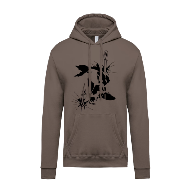 50% coton ring-spun / 50% polyester recyclé post consumer. Molleton gratté. Coupe straight. Coupé cousu. Bord-côte 2x1 montage tubulaire pour une meilleure finition au col, bas de manches et de vêtement. Poche kangourou. Capuche doublée polycoton avec cordon de serrage plat. Bande de propreté jersey ton sur ton intérieur col.